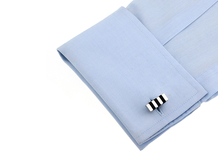 • 长方形 黑色珐琅 镀白钢 袖扣 袖钉 166742