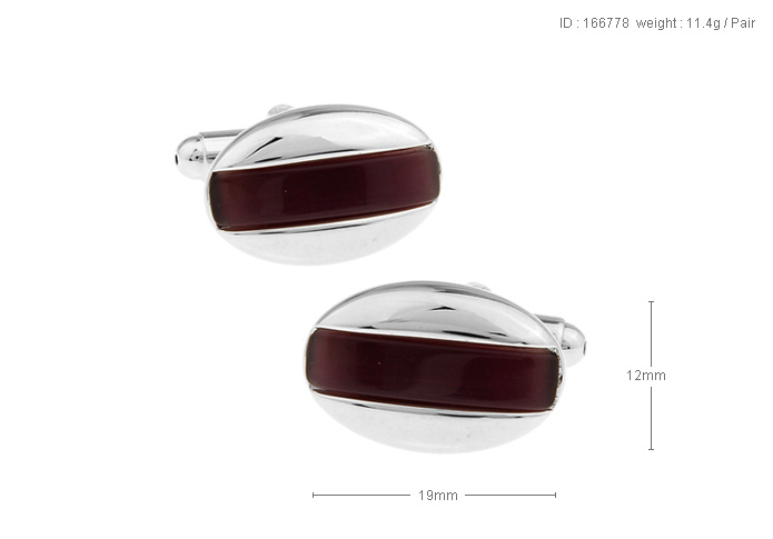 • 椭圆形 黑色烤漆 镀白钢 袖扣 袖钉 166778
