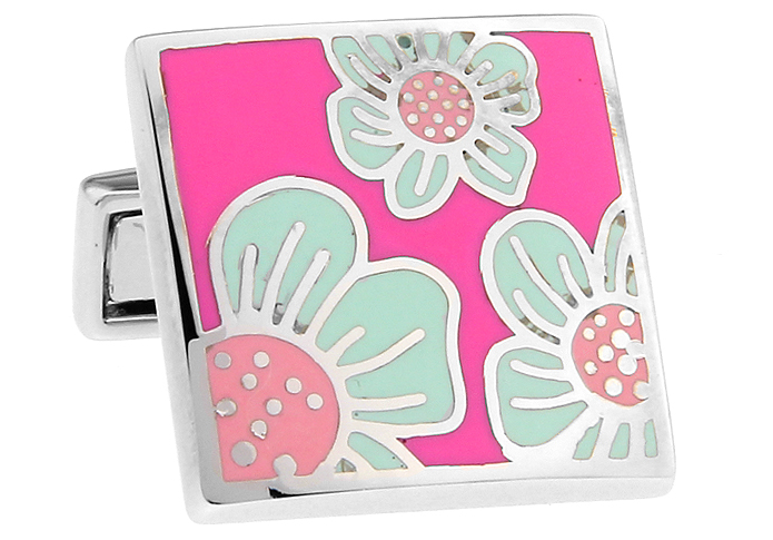 • 正方形 花 红白珐琅 TS 镀白钢 袖扣 袖钉 167206
