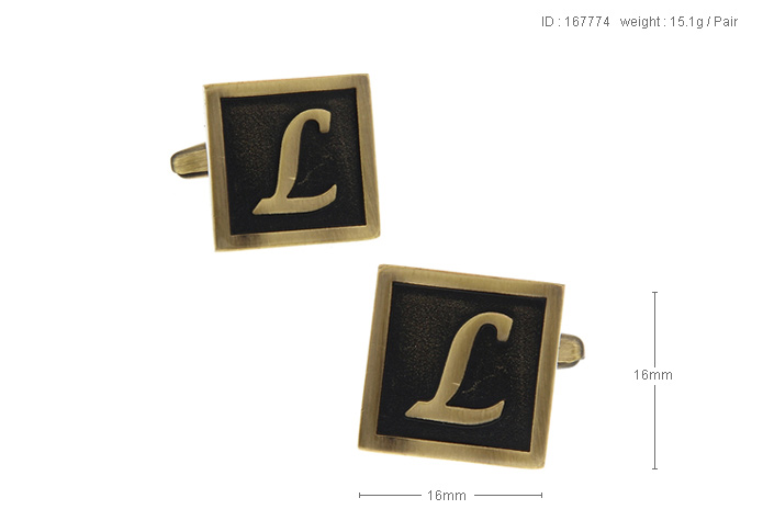 • 正方形字母 L 黑色烤漆 青铜色拉丝 袖扣 袖钉167774