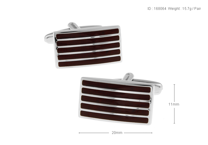 • 长方线条形 黑色珐琅 镀白钢 袖扣 袖钉 168064