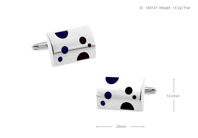 • 长方弧形 蓝色 紫色 点漆 镀白钢 袖扣 袖钉168147