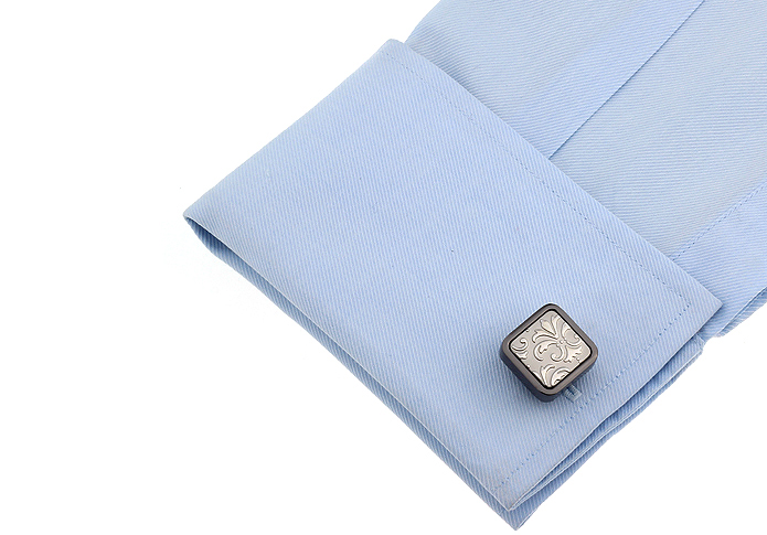 • 正方形 厚重 花纹 双色 镀黑枪 白钢 袖扣 袖钉168301