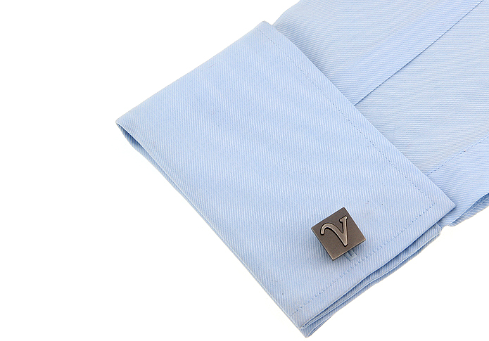 • 正方形字母 V 磨砂面 黑枪拉丝 袖扣 袖钉168323