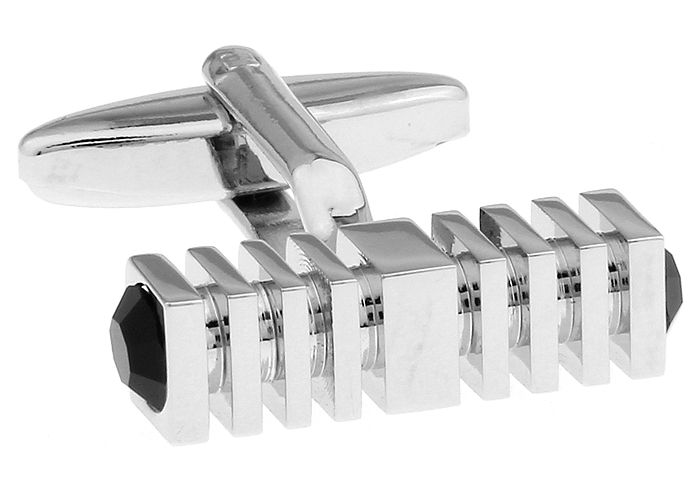 • 长方条柱子 隔层 双头黑色水钻 镀白钢 袖扣 袖钉 168443