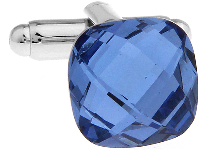 • 小正方 菱形方格 切面 浅蓝色 玻璃 镀白钢 袖扣 袖钉 168450