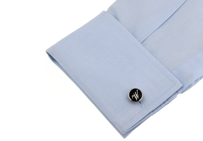 • 圆形字母 W 黑底 银字 烤漆 袖扣 袖钉168500