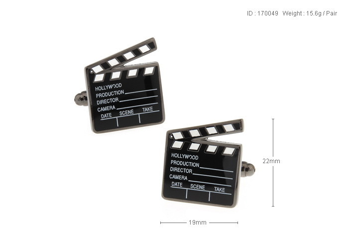 • 电影 拍电影打板 导演场记板 黑色 白色 珐琅 镀黑枪色 袖扣 袖钉 170049