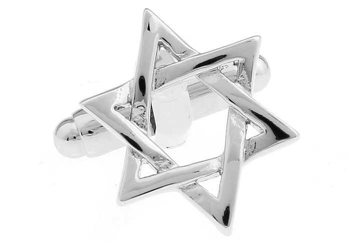 • 宗教政治 镂空六角星 素色光面金属 镀白钢 袖扣 袖钉 170102
