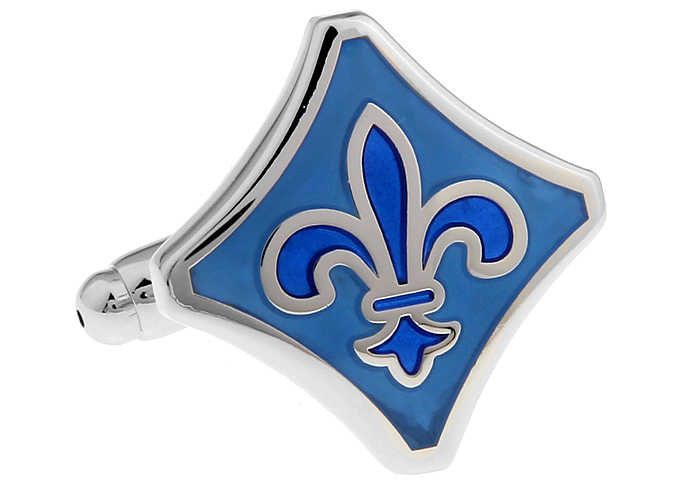 • 菱形 凹边 欧洲中世纪古典花纹元素 蓝色 浅蓝色 珐琅 镀白钢 袖扣 袖钉170168