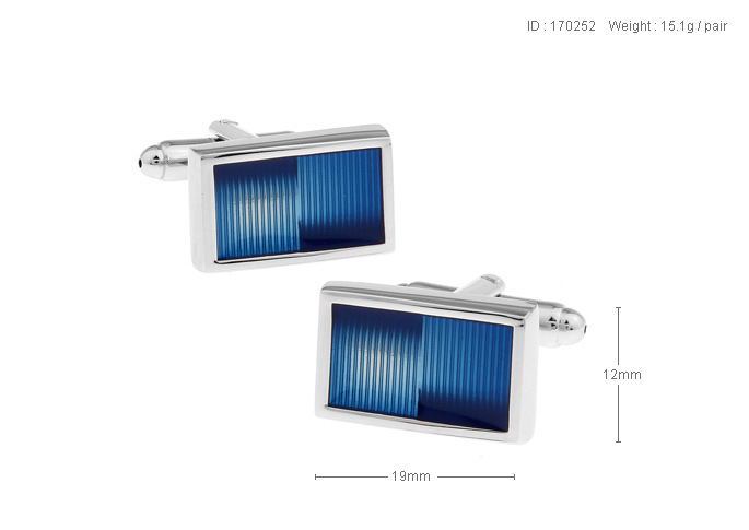 • 长方形 高低错位线条 映射深浅 蓝色烤漆 镀白钢 袖扣 袖钉170252