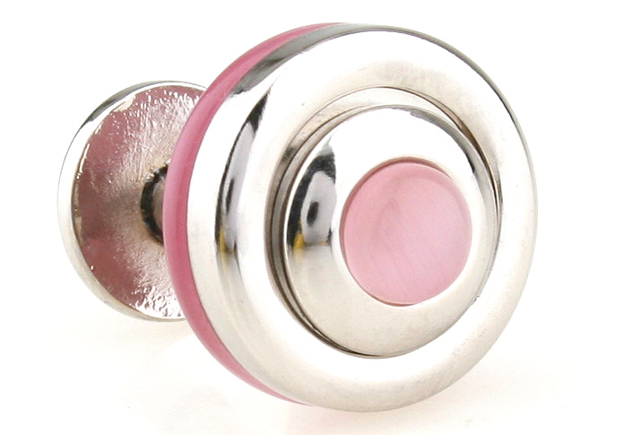 • 圆形 可上下滑动 头尾互换 浅紫色 猫眼石 双头 镀白钢 袖扣 袖钉170260