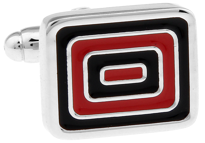 • 长方形 回字迷宫 黑色红色烤漆 镀白钢 袖扣 袖钉170276