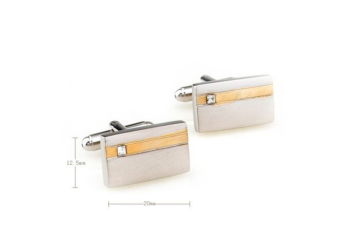 • 长方形 金属拉丝 白色方钻 双色电镀 袖扣 袖钉 170370
