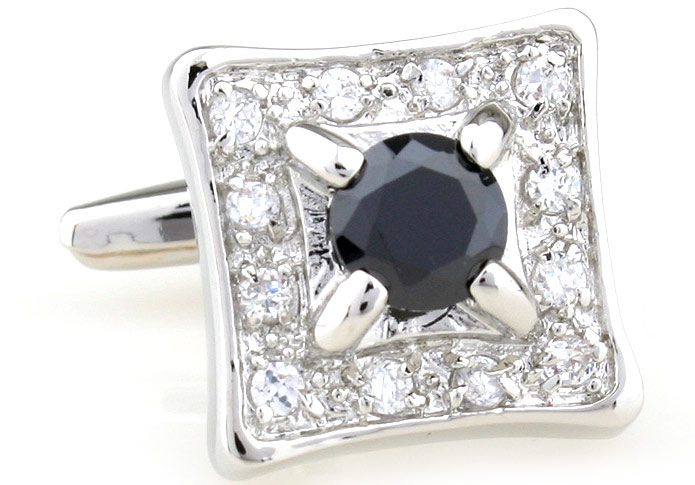 • 正方形 凹边 黑色 白色 锆石 爪锆 镀白钢 袖扣 袖钉 170409