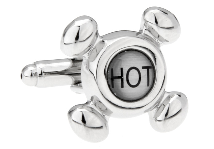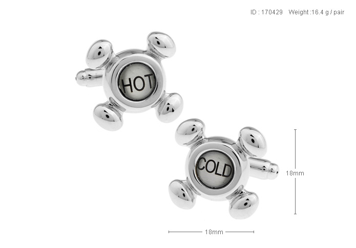 • 生活元素 工具 饮水机冷暖开关 HOT COLD 胶片印刷 镀白钢 袖扣 袖钉170429