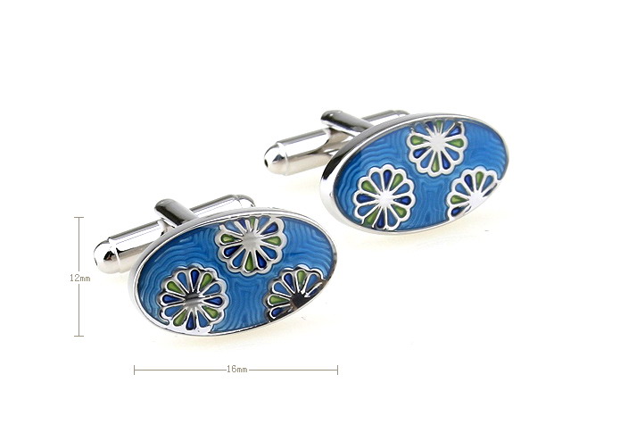• 生活元素 植物 椭圆形 三朵向日葵 太阳花 蓝色底 多色烤漆 滴胶 镀白钢 袖扣 袖钉 170448