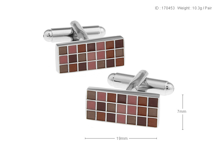 • 长方形 3*7 21个小方格子 粉色 多色多彩烤漆 镀白钢 袖扣 袖钉 170453