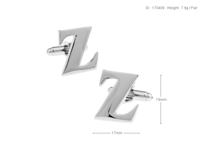 • 大写镂空字母 Z 微软Book Antiqua字体 素色光面金属 镀白钢 袖扣 袖钉170489