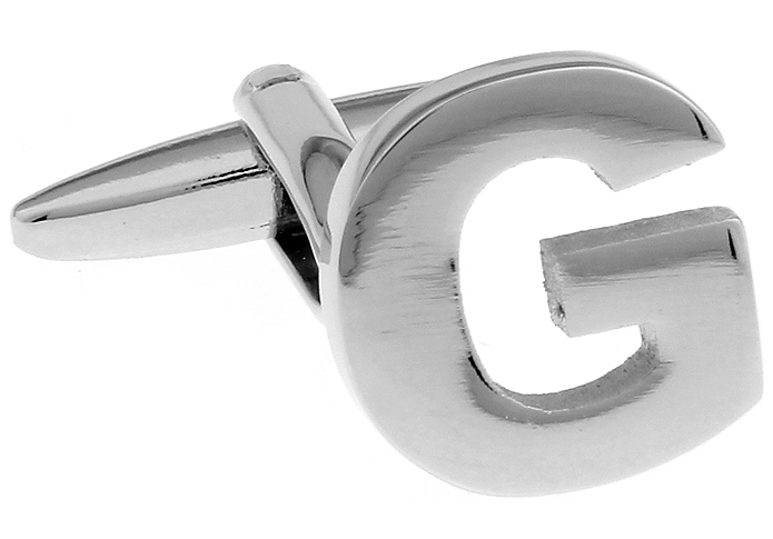 • 正方楷体 小尺寸 大写镂空字母 G 素色光面金属 镀白钢 袖扣 袖钉170496