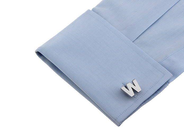 • 正方楷体 小尺寸 大写镂空字母 W 素色光面金属 镀白钢 袖扣 袖钉170512