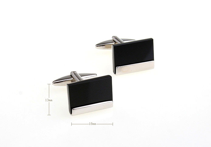 • 长方形 折边 黑玛瑙 镀白钢 袖扣 袖钉 170521
