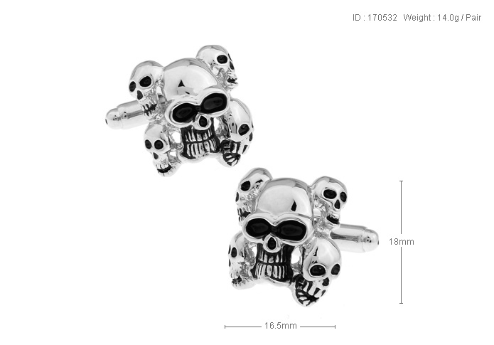 • 军事骷髅 五个骷髅头 黑色烤漆 镀白钢 袖扣 袖钉 170532