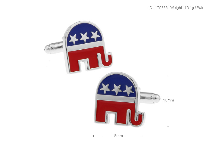 • 美国政治 党派 共和党党徽 黑色白色红色多色珐琅 镀白钢 袖扣 袖钉 170533
