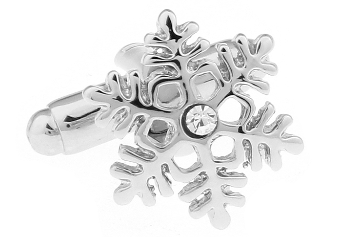 • 生活元素 圣诞节日 天气 飘雪 雪花 素色光面金属 白色水钻 镀白钢 袖扣 袖钉 170545