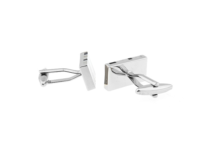 • 长方连体打磨 灰黑猫眼石 镀白钢 袖扣 袖钉 170676