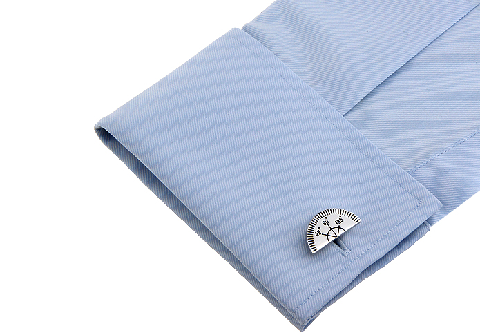 • 生活元素 工具 半圆角度测量尺子 角规 黑色烤漆 镀白钢 袖扣 袖钉 170684