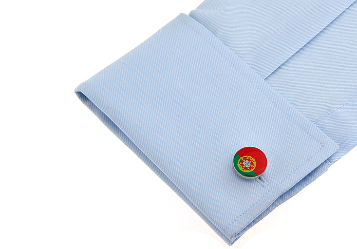 • 国旗 葡萄牙 圆形 绿色 红色 黄色 白色 蓝色 胶片印刷 镀白钢 袖扣 袖钉170953