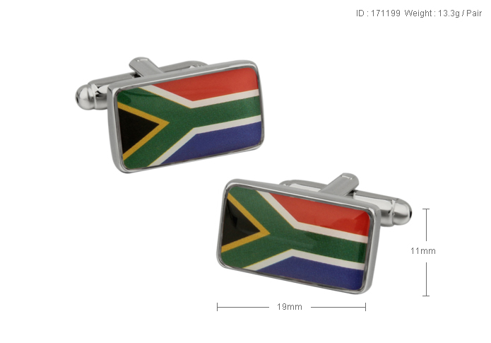• 国旗 南非国旗 烤漆 镀白钢 袖扣 袖钉171199
