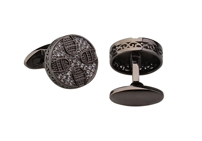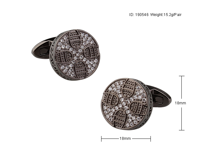 • 高端商务款 圆形 白色水钻 电镀枪黑色 袖扣袖钉 190546