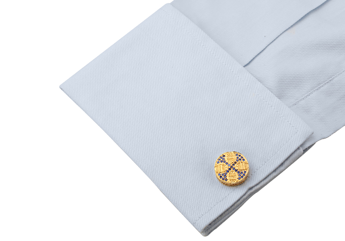 • 高端商务款 圆形 蓝色水钻 电镀金色 袖扣袖钉 190548