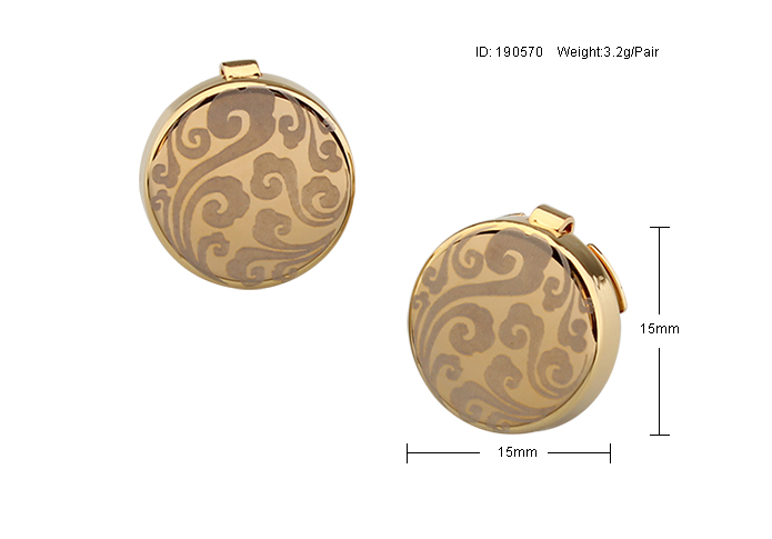• 圆形 金色海浪花纹 祥云图腾 电镀金色 美式衬衫袖扣扣帽190570