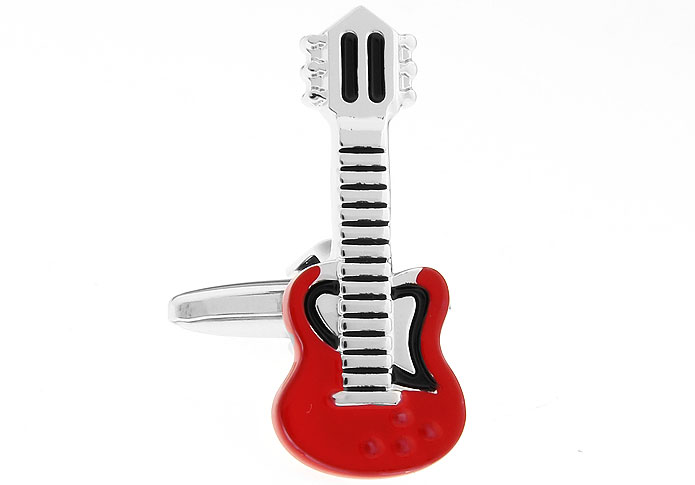 • 音乐器材 工具 吉它 六弦琴 红色琴箱 黑色烤漆 镀白钢 袖扣 袖钉210031