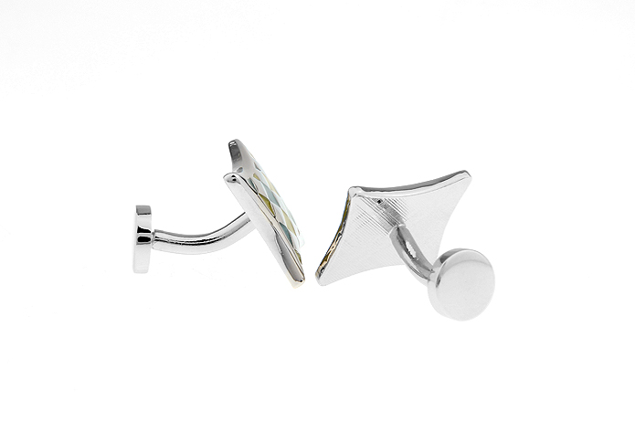 • 正方形 弧边 斜纹线条 菱形 白色底 黄蓝色 烤漆 TS 镀白钢 袖扣 袖钉210097