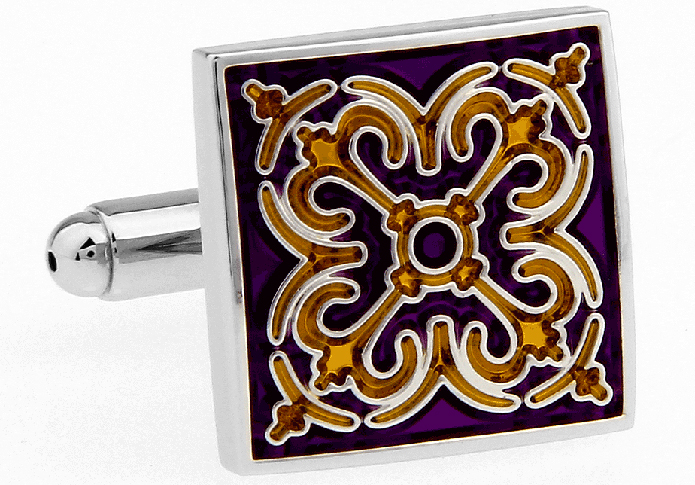 • 正方形 复古 古典海浪花纹 紫色烤漆 镀白钢 袖扣 袖钉210119