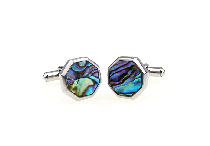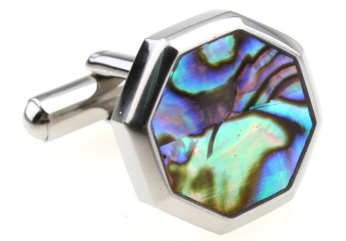 • 八边形 炫彩鲍鱼贝壳 不锈钢 袖扣 袖钉230004