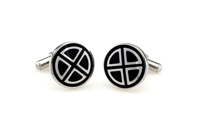 • 圆形 四等分三角扇形 黑色珐琅 不锈钢 袖扣 袖钉 230046