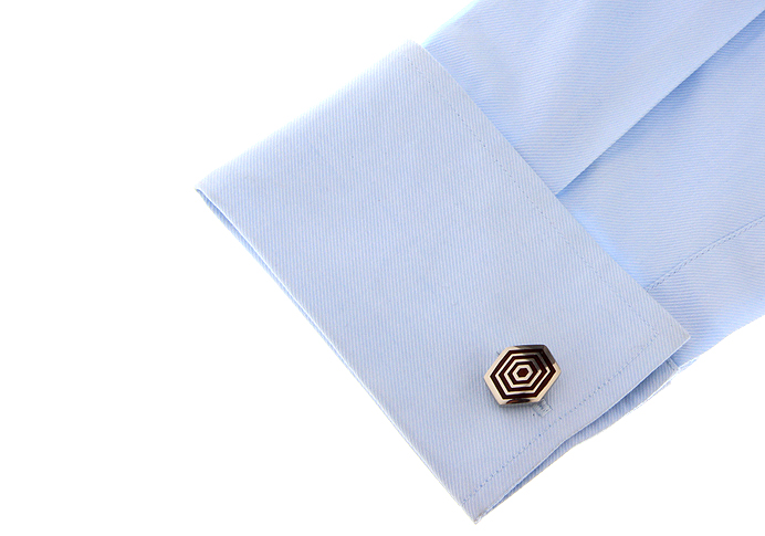 • 密室环绕六边形 红色木纹 不锈钢 袖扣 袖钉230075