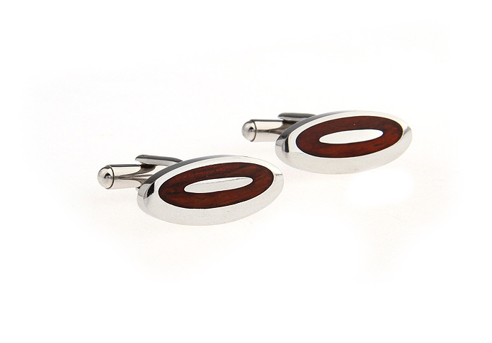 • 扁形椭圆 红色木纹 不锈钢 袖扣 袖钉 230083