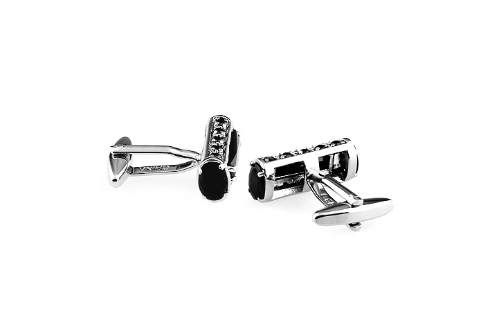• 长条扁形圆柱体 四边爪黑锆石 镀白钢 袖扣 袖钉 330016