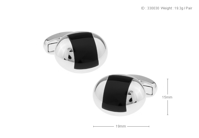 • 椭圆蛋形 黑色玛瑙 镀白钢 TS 袖扣 袖钉 330030