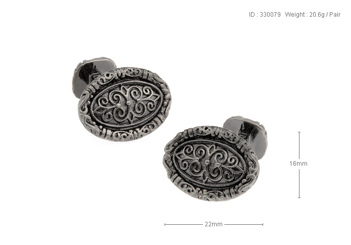 • 复古乌斯拉 椭圆形 古典箭头花纹 双头 镀黑枪色 拉丝 袖扣 袖钉 330079