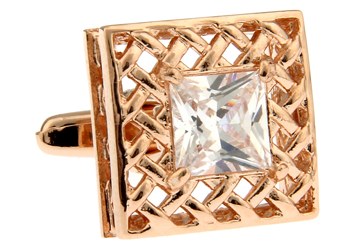 • 正方形 编织网状 白色锆石 电镀玫瑰金色 袖扣 袖钉 330113